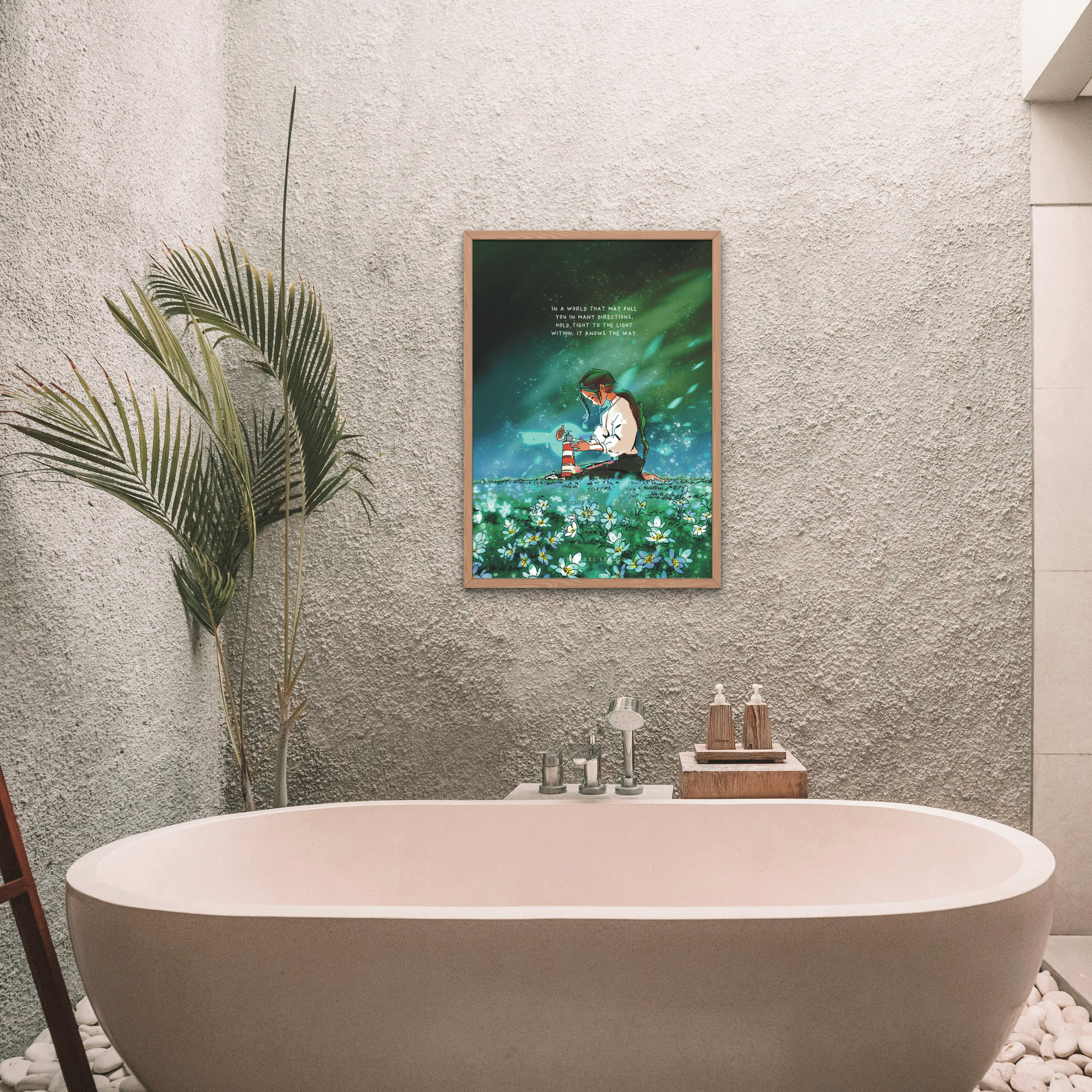 This art print invites reflection on finding guidance amid life’s many directions. Through soft, evocative imagery, it emphasizes the inner light we all carry—a quiet compass that leads us forward. A gentle reminder to trust yourself, stay grounded, and let your own inner wisdom illuminate the path ahead.