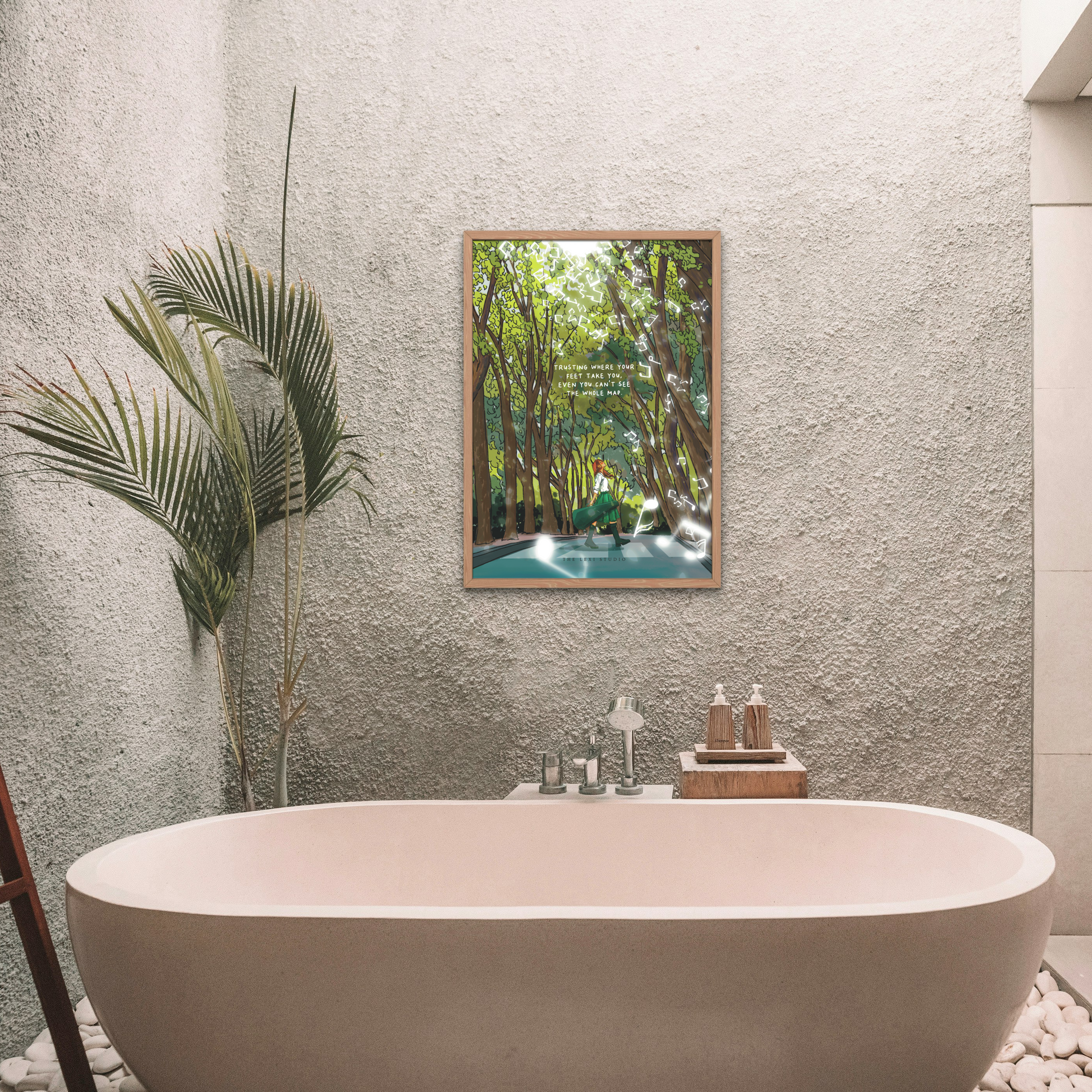 This art print shows a girl crossing a street on a zebra cross, capturing a quiet, reflective moment in everyday life. Through subtle, evocative imagery, it conveys courage, presence, and the small acts of trust we make as we navigate our paths. A gentle reminder to move forward, step by step, with awareness and confidence.