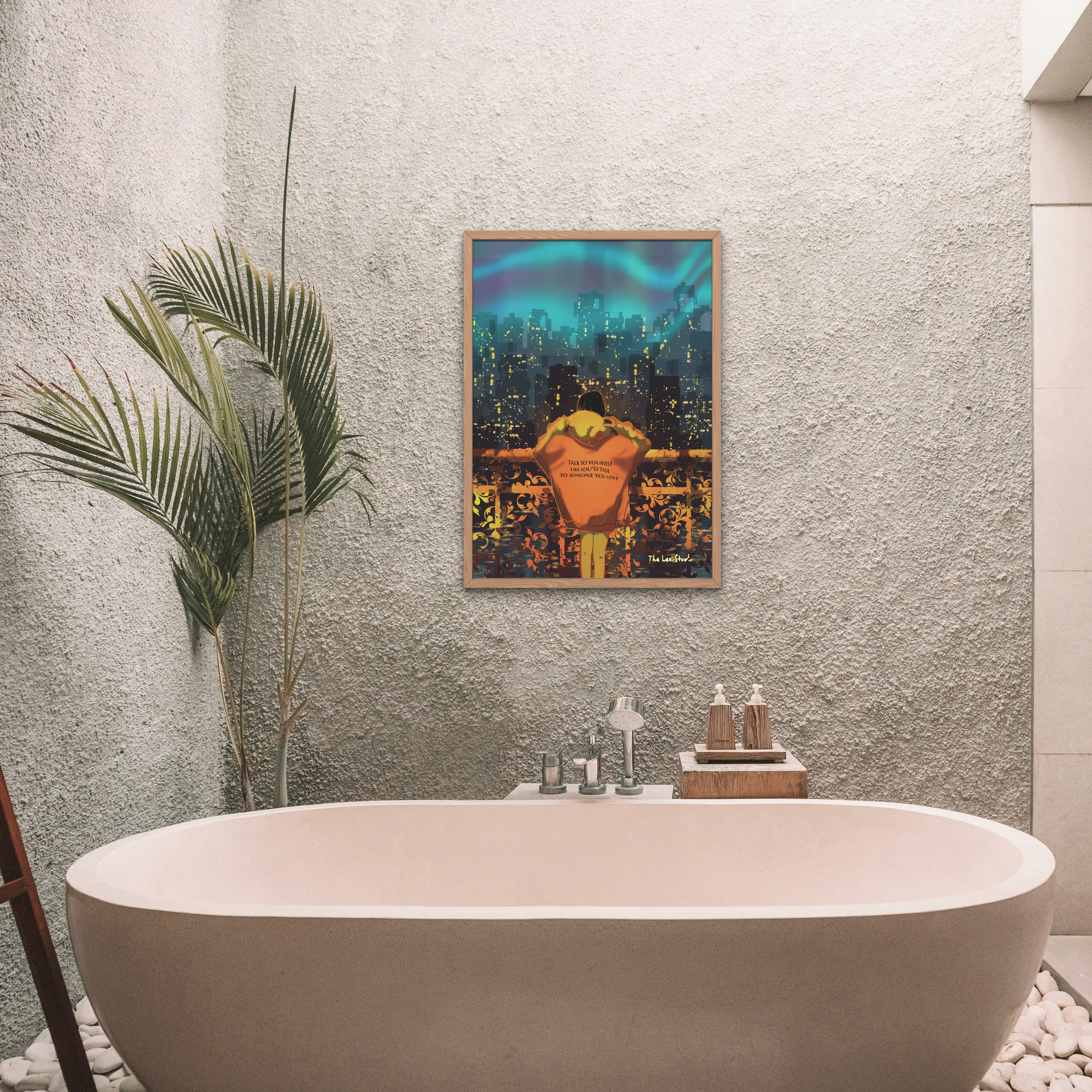This art print is a gentle reminder to honor and uplift yourself. Through warm, encouraging imagery, it inspires treating yourself with love, patience, and kindness—just as you would for someone you deeply care about. A celebration of self-compassion and the power of positive inner dialogue.