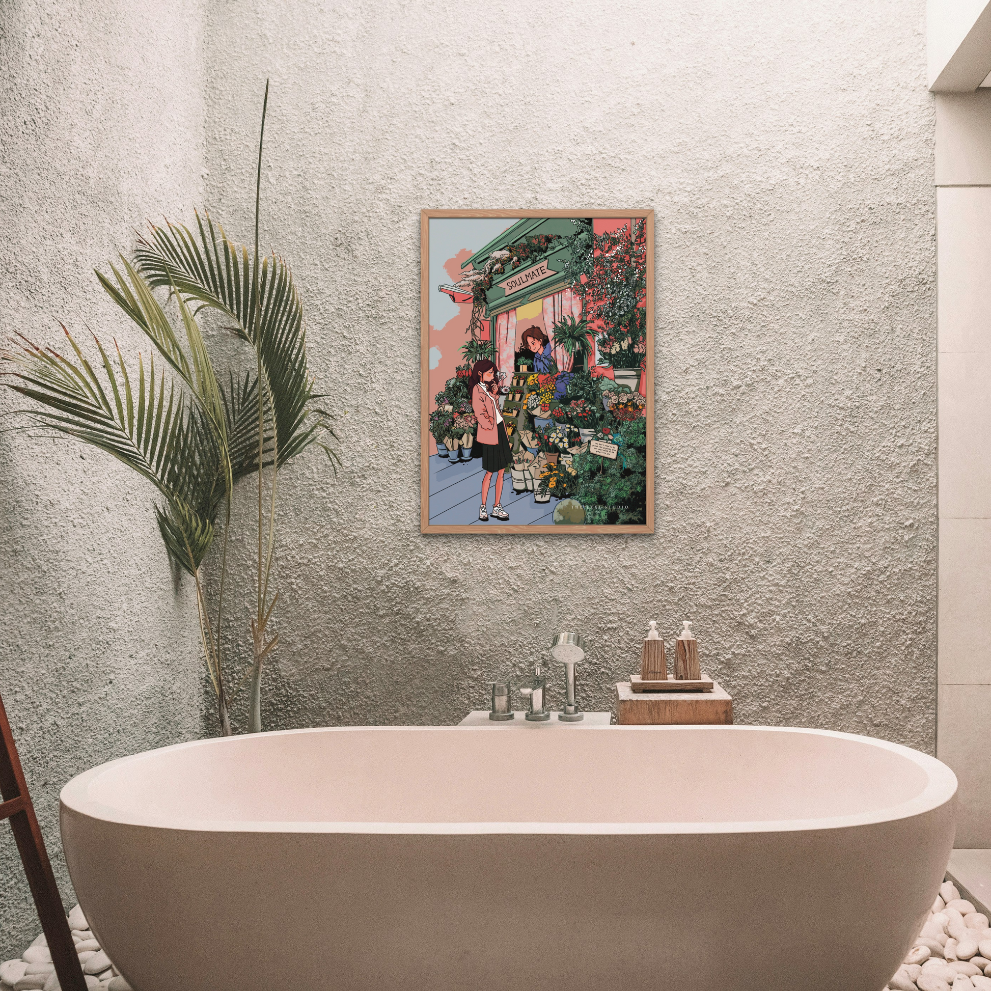 Soul Mate is a tender illustration capturing the quiet magic of love found in an unexpected place. In a small flower shop, a girl meets her soulmate—surrounded by blooming petals, soft colors, and the gentle feeling that some connections are meant to happen. This art print celebrates serendipity, warmth, and the beauty of love arriving softly, just when you’re ready to see it.